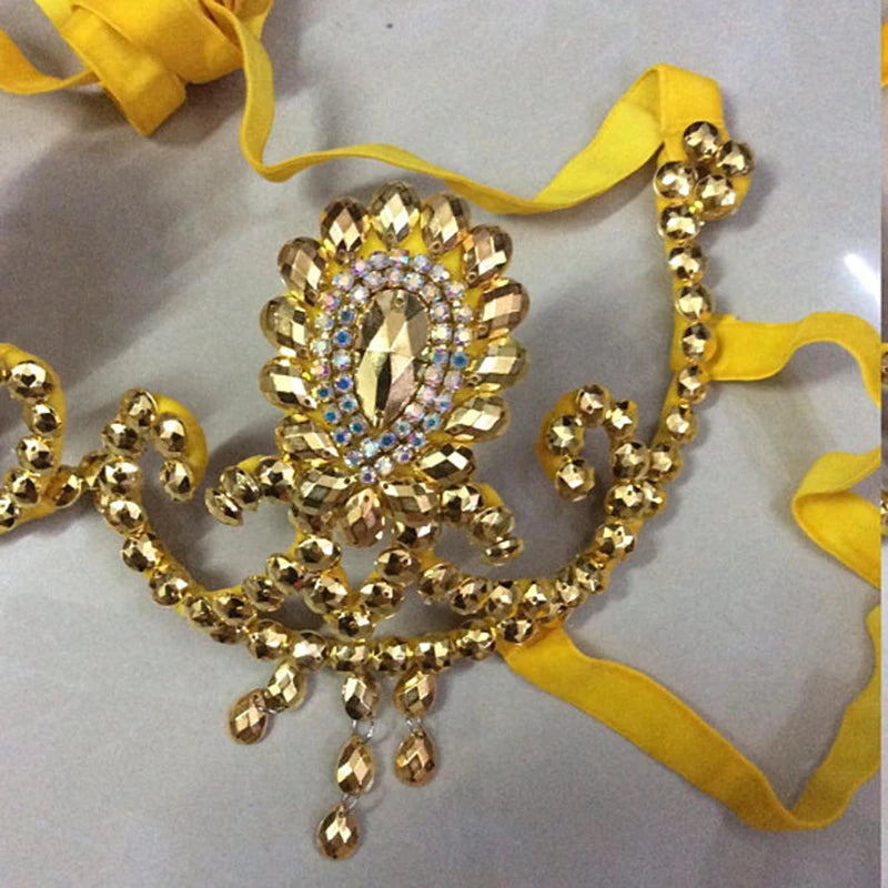 This exquisite belly dance bra and belt set is adorned with sequins and rhinestones, offering a sparkling touch to any cabaret performance. Crafted with attention to detail, it provides a comfortable fit perfect for both professional shows and dance practice.