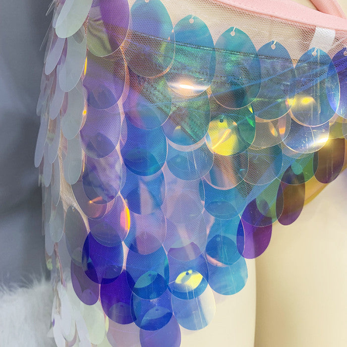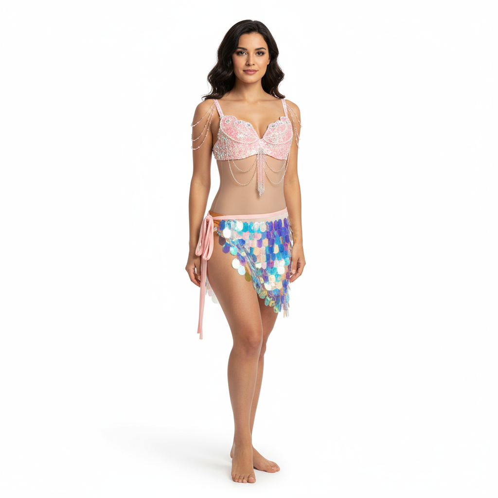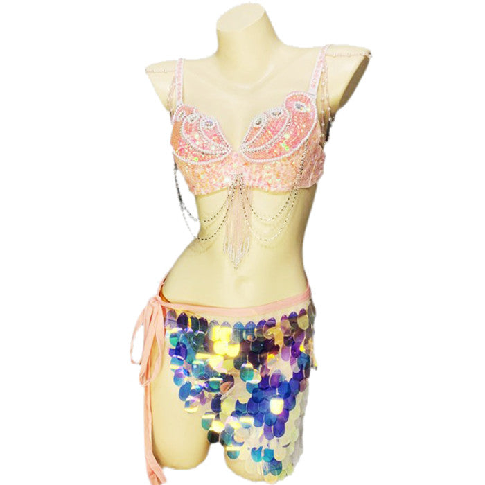 A shimmering three-piece ensemble with sequins that catch the light for a standout look, crafted for dance performances, festivals, and stage wear.